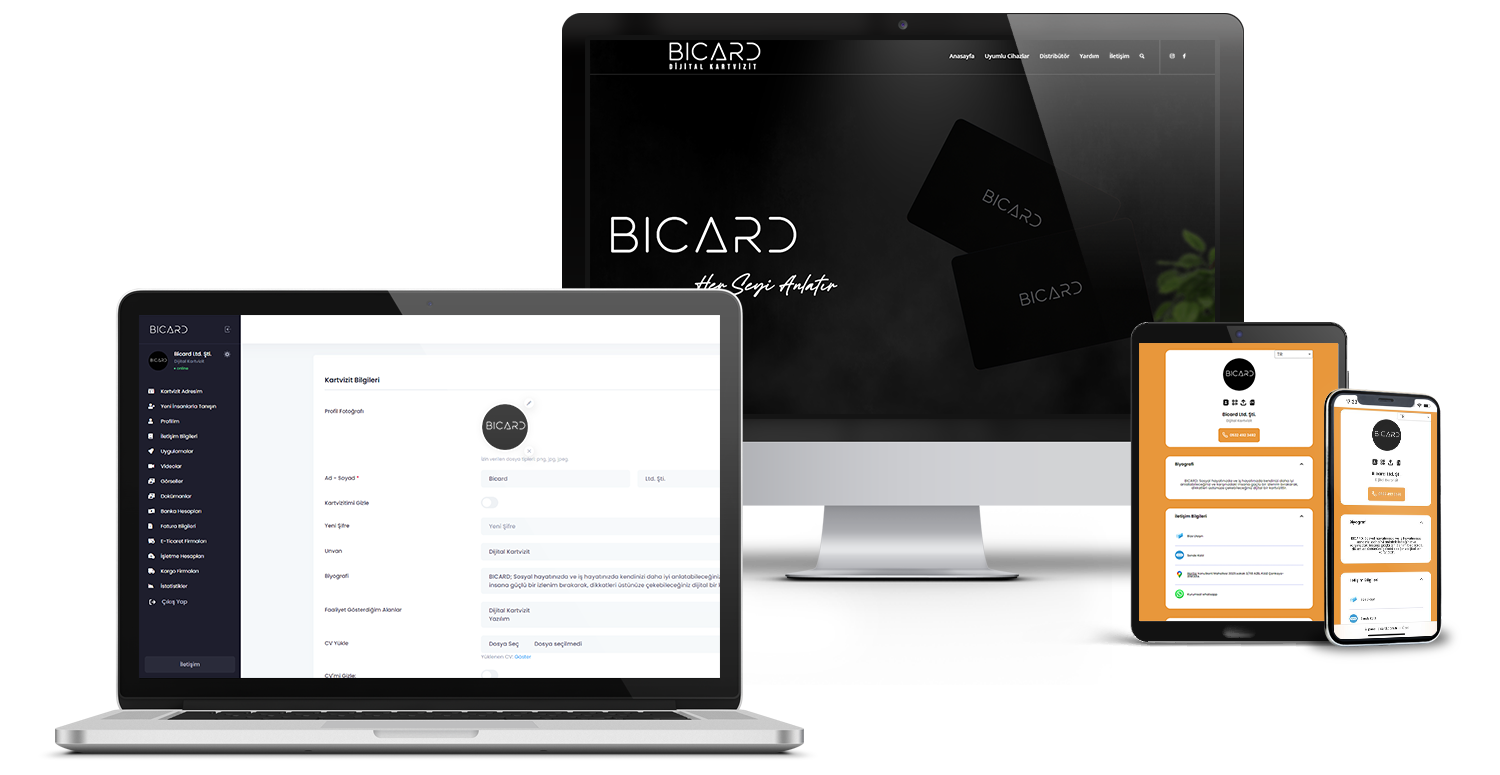 Üstelik BICARD ile oluşturduğunuz dijital dokunuşunuzu, hayatınızı ya da markanızı anlatan renkleri ve görselleri kullanarak profilinizin temasında kişiselleştirebilirsiniz.
